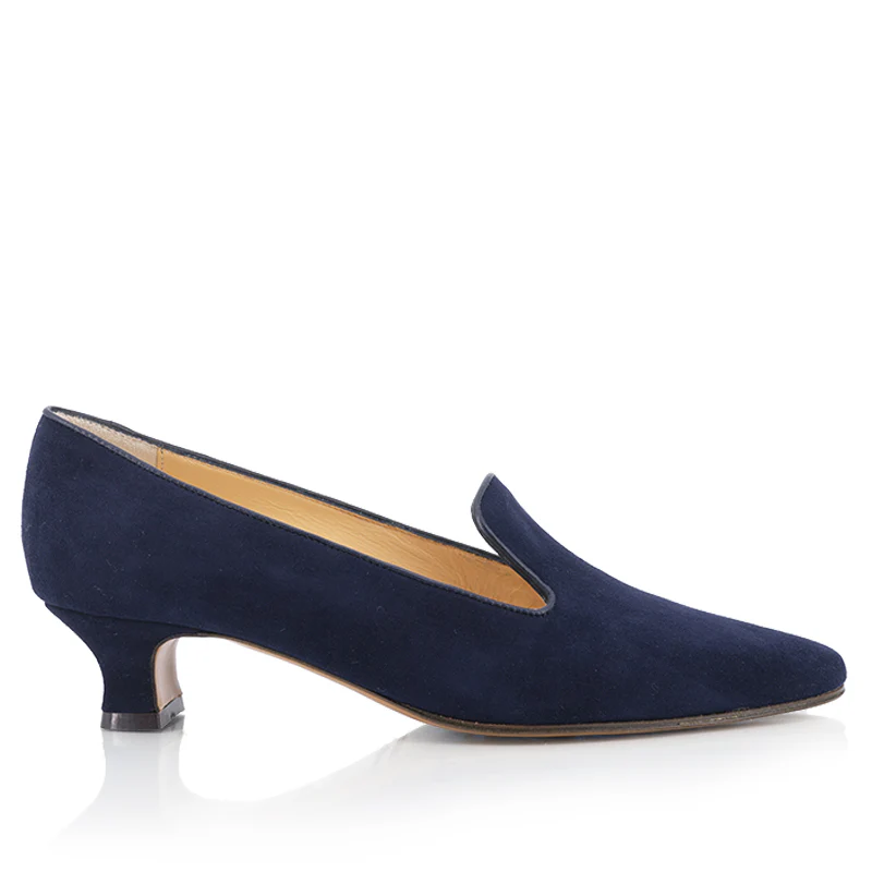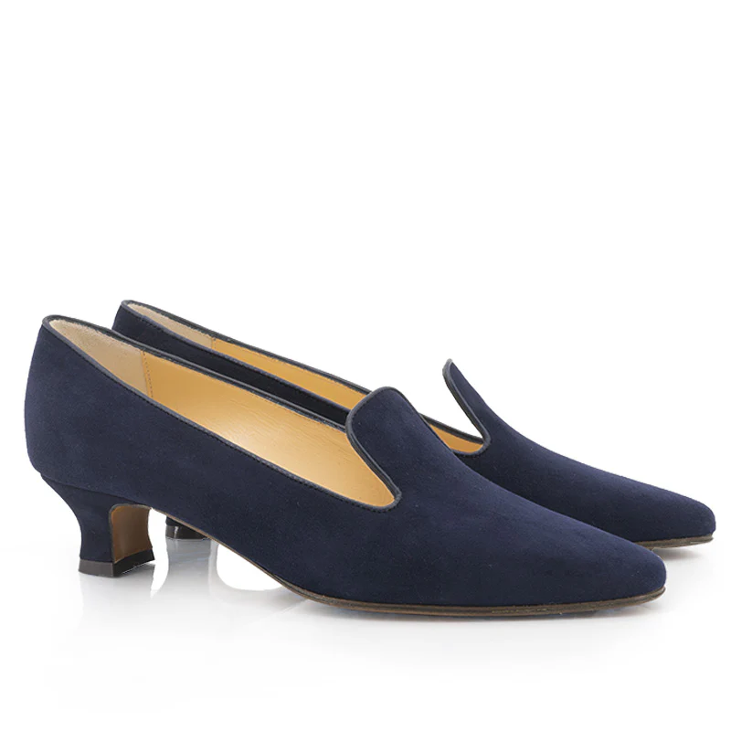 Un escarpin élégant, délicat et intemporel.Semelle cuir, talon recouvert.Talon : 4 cm Chèvre velours marine. Bordure en agneau ton sur ton.