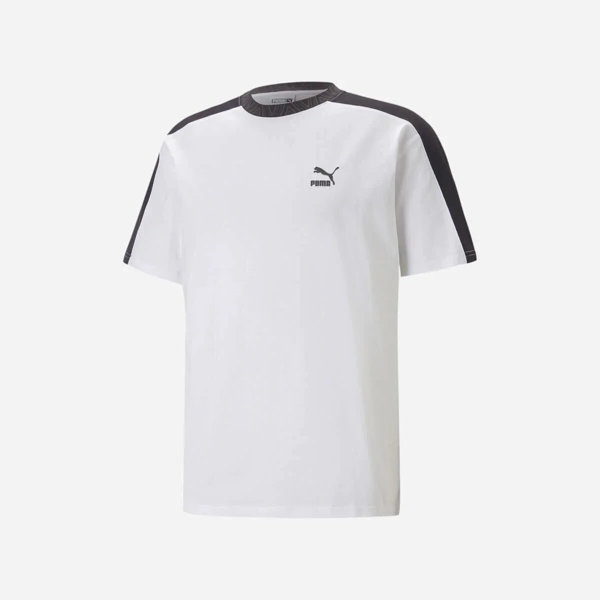 Un t-shirt qui porte bien son nom. Le PUMA T7 TREND 7ETTER Tee rend hommage à l’héritage de la marque avec un design audacieux et raffiné. Confectionné en 100 % coton doux, il arbore les emblématiques bandes T7 sur les manches et une encolure côtelée pour un style affirmé. Le logo PUMA Archive N° 1 brodé sur la poitrine ajoute une touche rétro élégante. à porter avec un chino ajusté ou un jean pour un look tendance et décontracté.