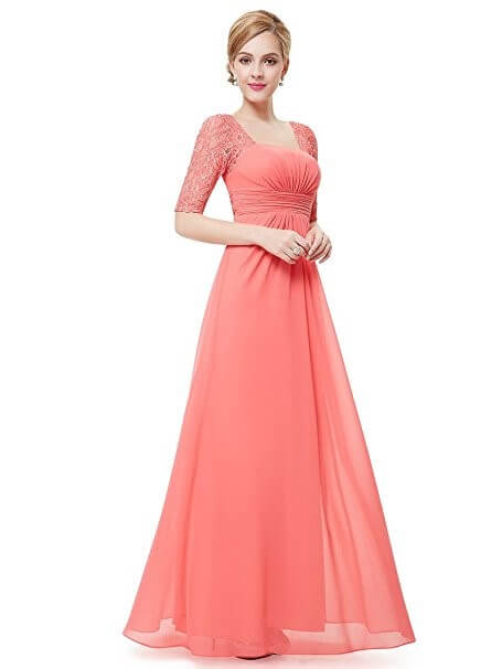 Robe pour Demoiselle d’Honneur avec Demi Manches en Dentelle