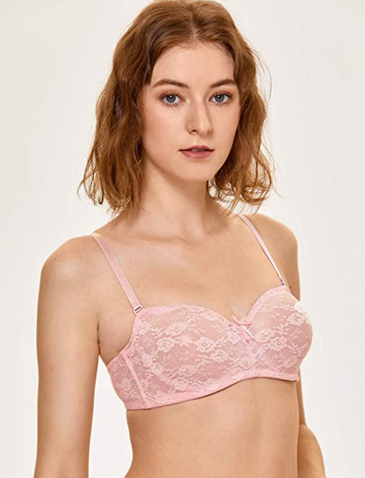 Soutien-Gorge Bandeau Dentelle à Armature avec Bretelle Amovible