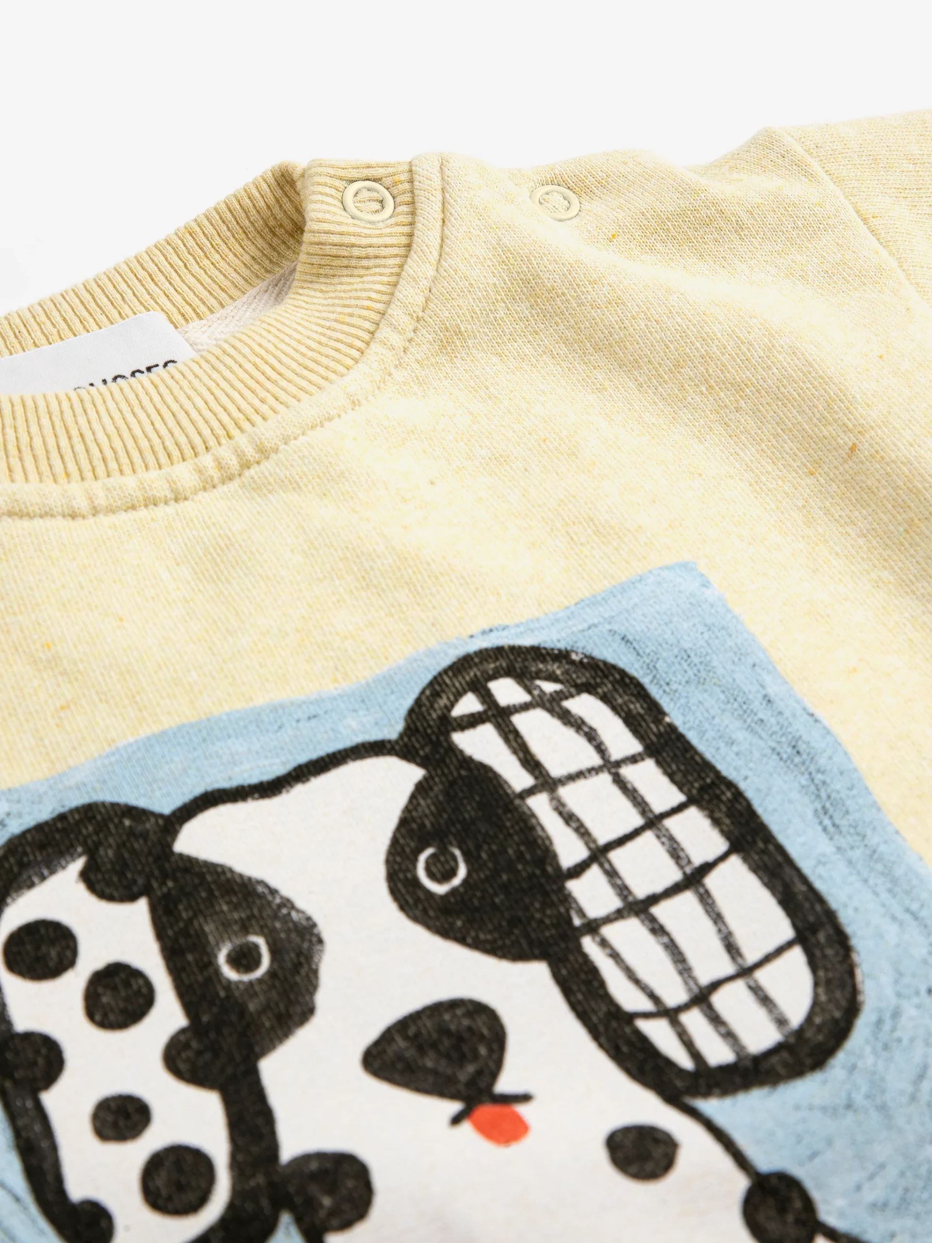 Un sweat bébé lumineux pour illuminer les journées des petits explorateurs. Sur le jaune vif, le motif Van Dog invite à l’aventure et à l’imaginaire. Confortable, doux et responsable, ce sweat accompagne bébé du jeu aux câlins avec style et légèreté.