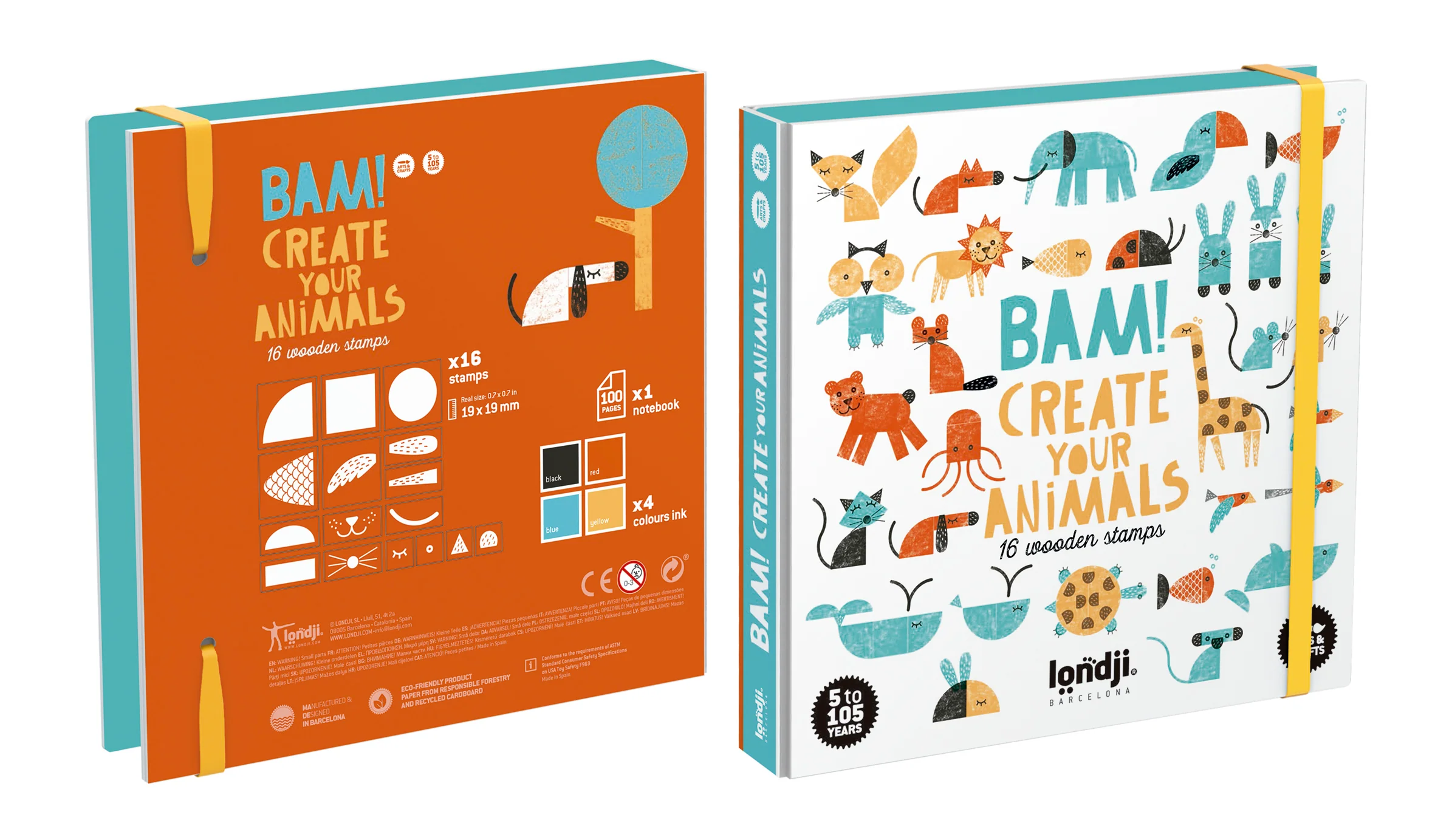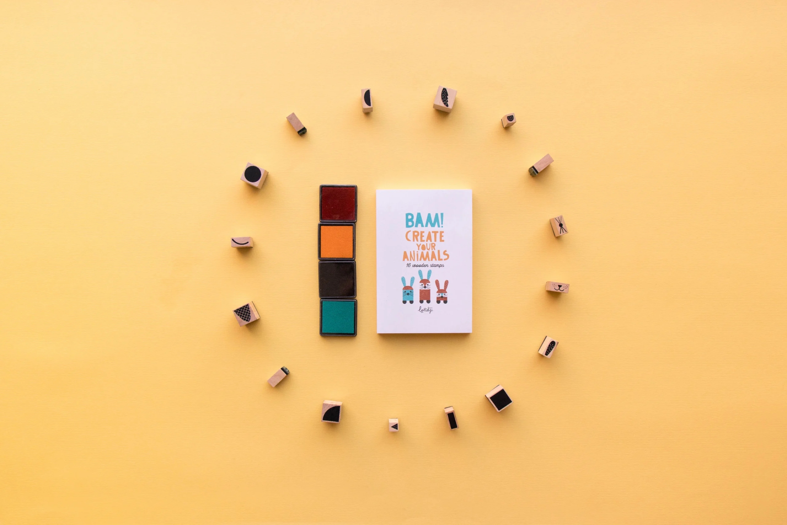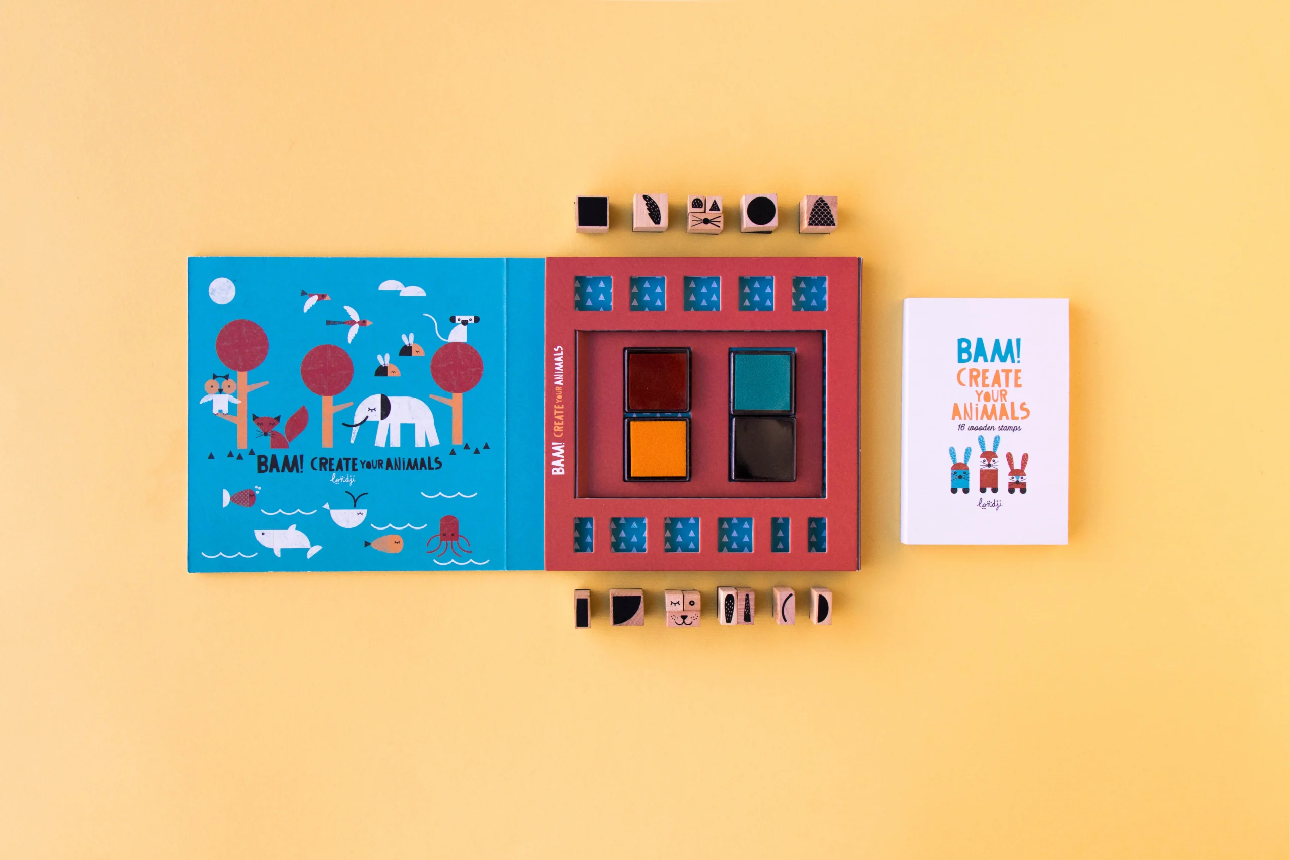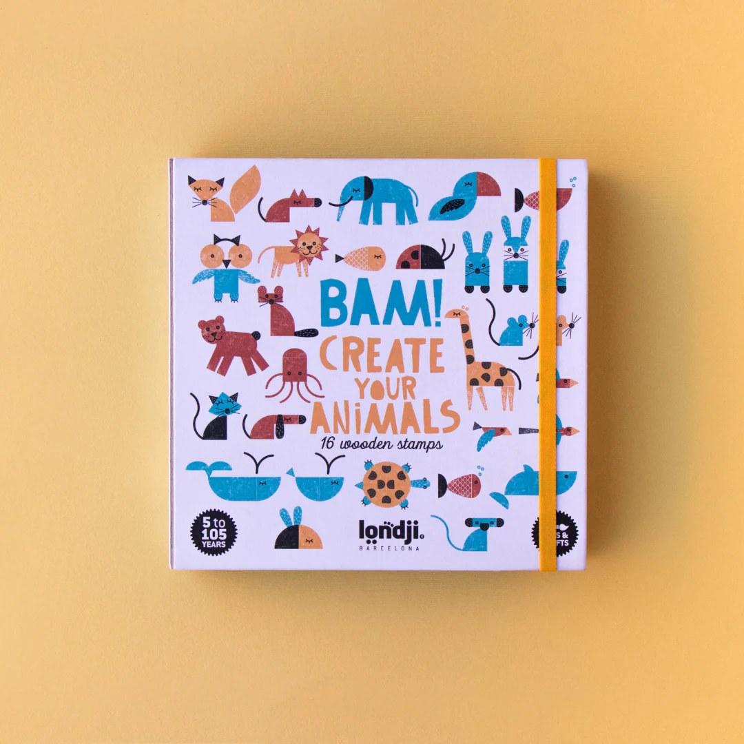 En combinant les tampons, des lions, éléphants, baleines, poissons, girafes… vont prendre vie ! 16 tampons en bois, 4 couleurs d’encre et un carnet inclus pour vos créations les plus folles !
