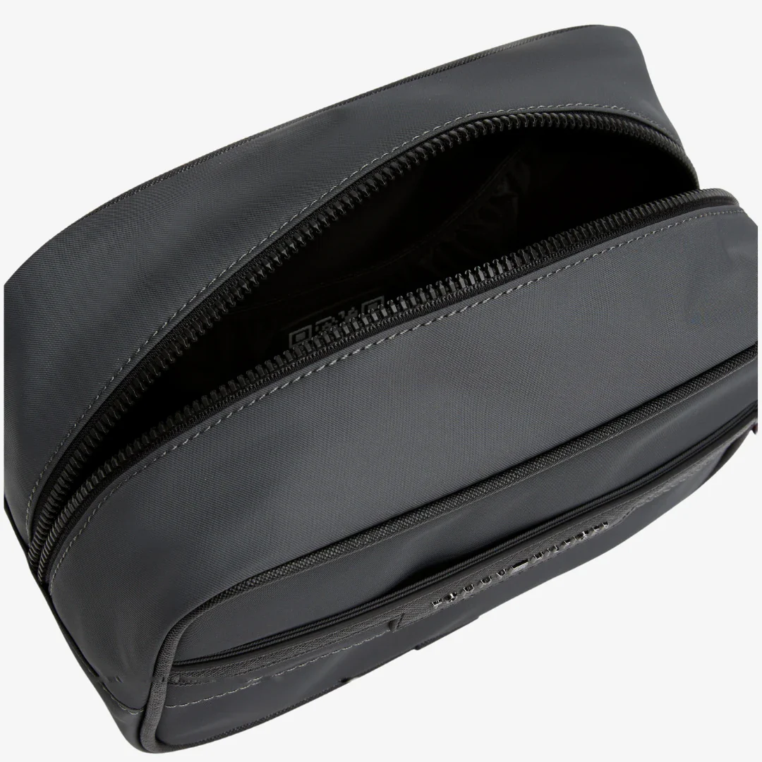 Trousse de toilette au design épuré, fermeture zippée, poignée latérale et logo signature marqué sur la face avant. Un accessoire pratique pour transporter vos essentiels de voyage avec style.