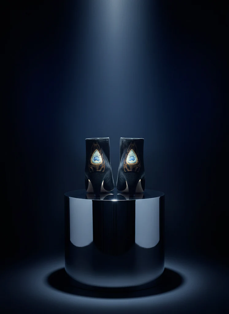• Hauteur de Talon : 5,5 cm• Nubuck noir, Plume de paon en nubuck métallisé bronze, doré, bleu et turquoise• Semelle intérieure et extérieure Cuir• Fabrication : Espagne• Un Amour de Swann chausse à la pointure Note : La peausserie peut présenter des irrégularités.
